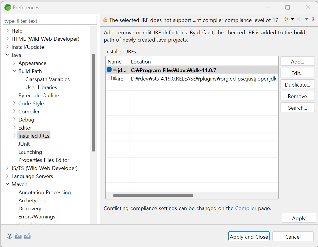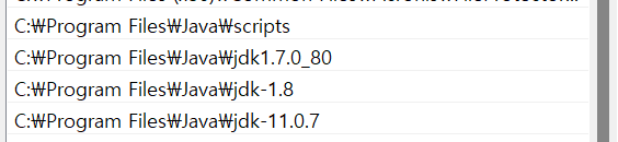 우선 저는 JAVA 1.7, 1.8, 11 세개 버전이 윈도우에 설치되어 있는데요