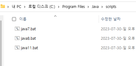 이제 이 자바 버전을 동적으로 바꾸기 위해서는 bat 파일이 필요한데