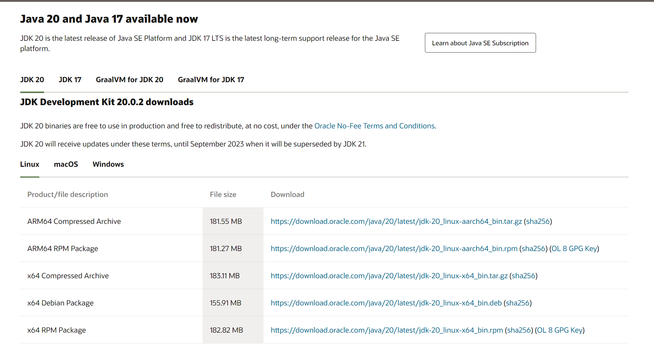 현재 글 작성일 기준으로 오라클에서 제공하고 있는 가장 최신 버전의 자바는 20 버전 입니다.